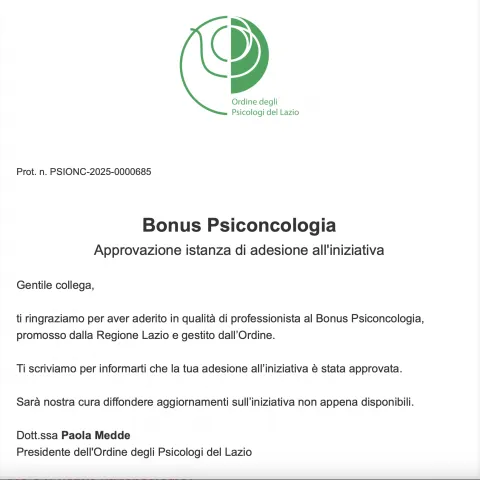 L’Ordine degli Psicologi del Lazio ha annunciato l’avvio della prima fase del Bonus Psiconcologia.